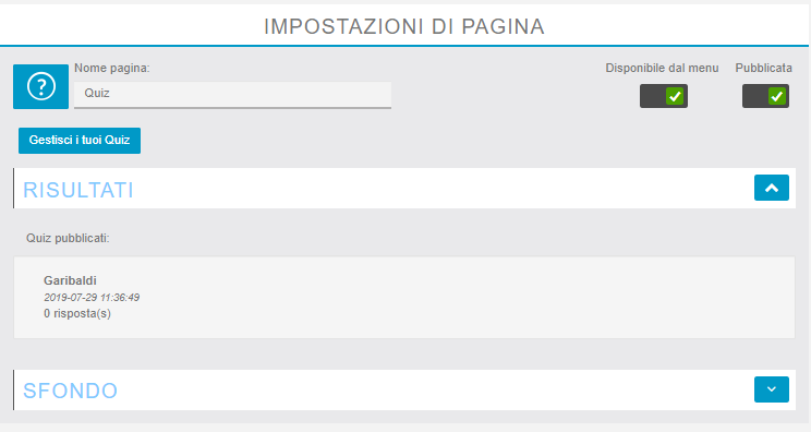 Tornando nella pagina iniziale della funzione Quiz abbiamo 2 ulteriori sezioni